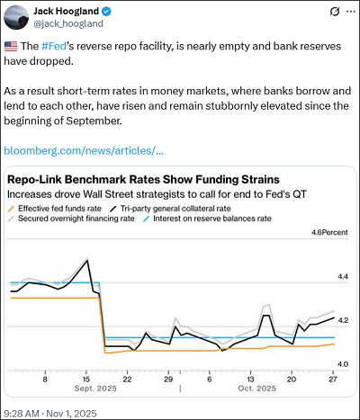 Bovenop de extra liquiditeit die sowieso in het systeem wordt gepompt door het eind van QT per 1 december én zodra de shutdown van de overheid voorbij is.