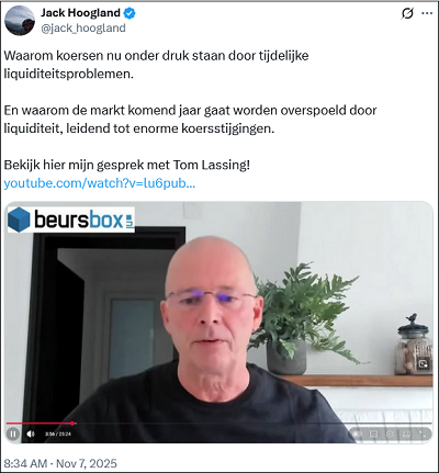 In onderstaande video vertel ik u (vanaf minuut 9) waarom liquiditeit nu tijdelijk wordt beperkt door de shutdown in de VS. Het einde van die shutdown zorgt binnenkort uiteraard juist voor tijdelijke extra liquiditeit!