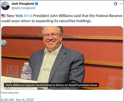 En in de tweet hieronder zien we de belangrijkste Fed-gouverneur John Williams, die alvast aangeeft dat ook in de VS de geldpers binnenkort weer gaat draaien.