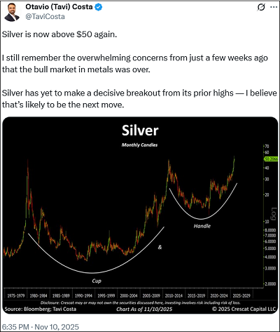 In de tweet hieronder zien we nog even de fantastische langjarige grafiek van zilver.
