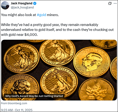 Maar tegelijk vermeldt dat goudaandelen ondanks hun fors gestegen koersen nog steeds opmerkelijk ondergewaardeerd zijn.