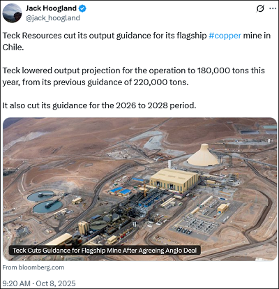 Tegelijk stapelen de problemen voor het aanbod van koper zich steeds meer op.